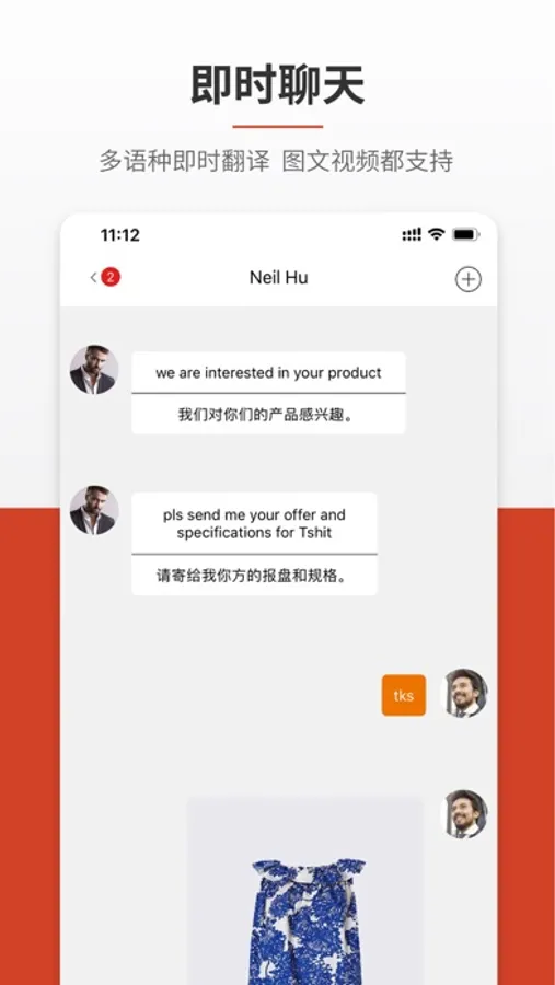 内嵌AI即时翻译,接受消息与发送消息时,支持15种语言的实时互译,让你更容易的开拓别人做不了的小语种市场。