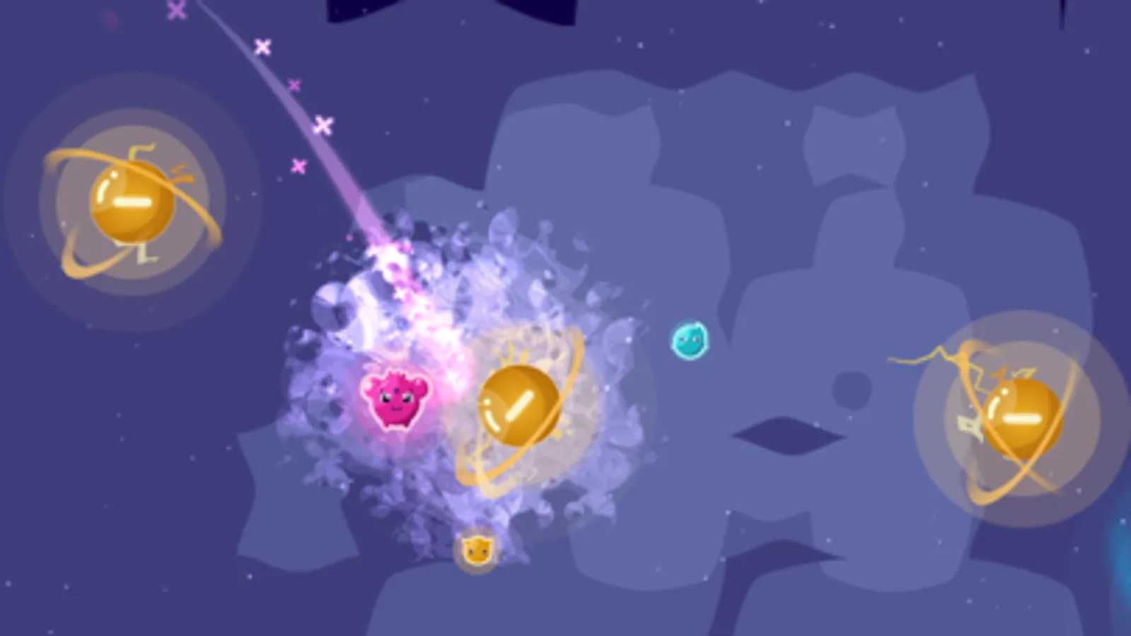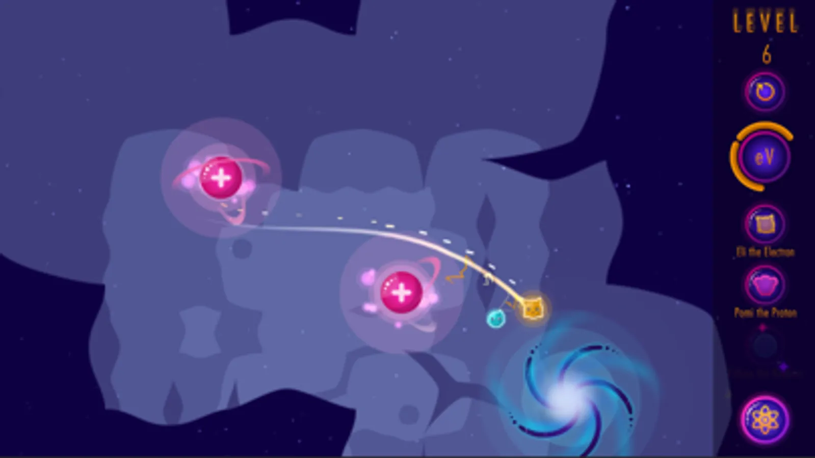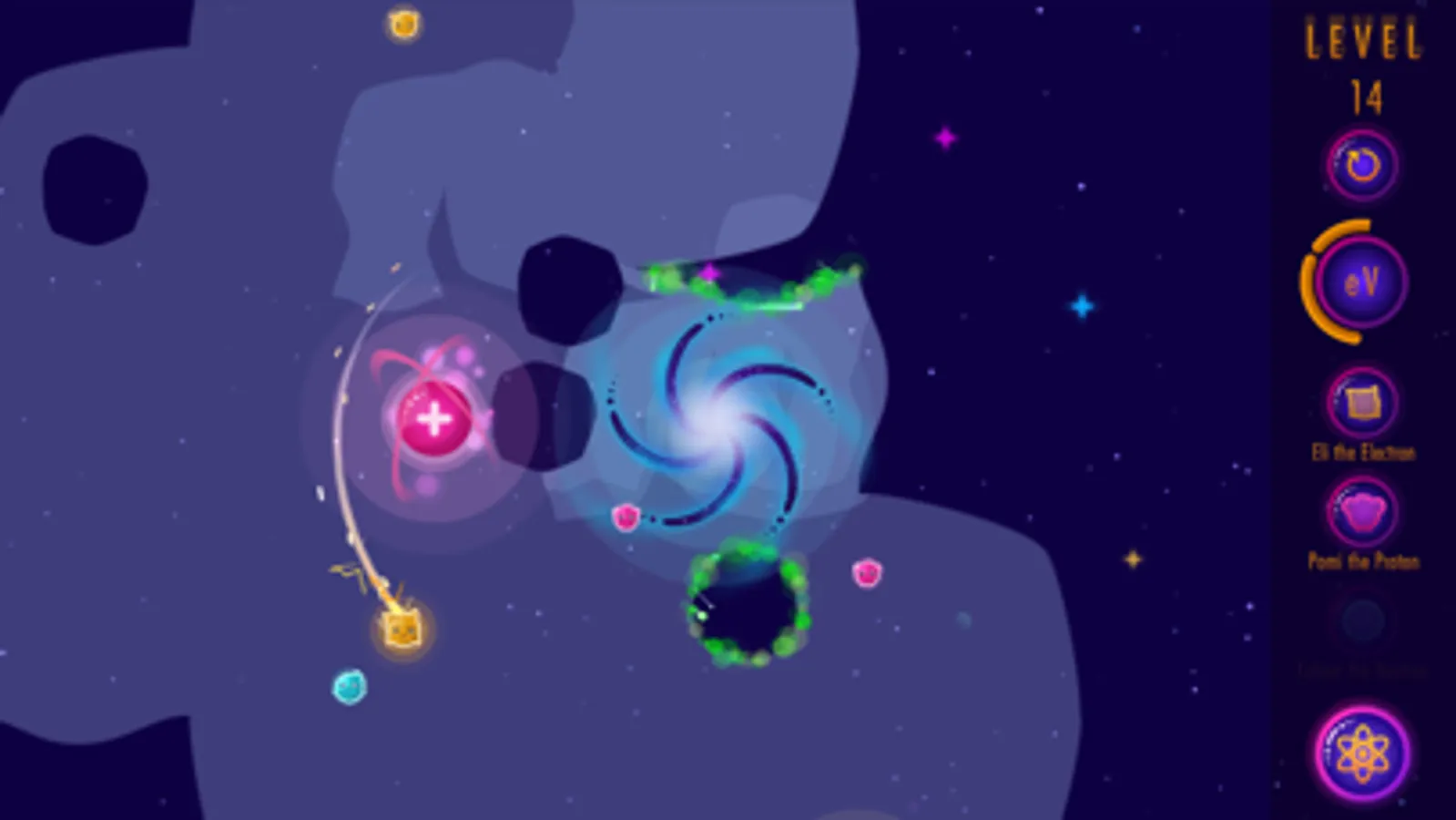 It is up to you, Eli, to rescue the elementary particles and the elements from our universe. You have to take them through rifts in space time to a safe parallel universe, preserving them from extinction. Journeying through the game you will rescue your friends Pomi, the proton, and Noemi, the neutron, thereafter you can chose to play as these characters as well.