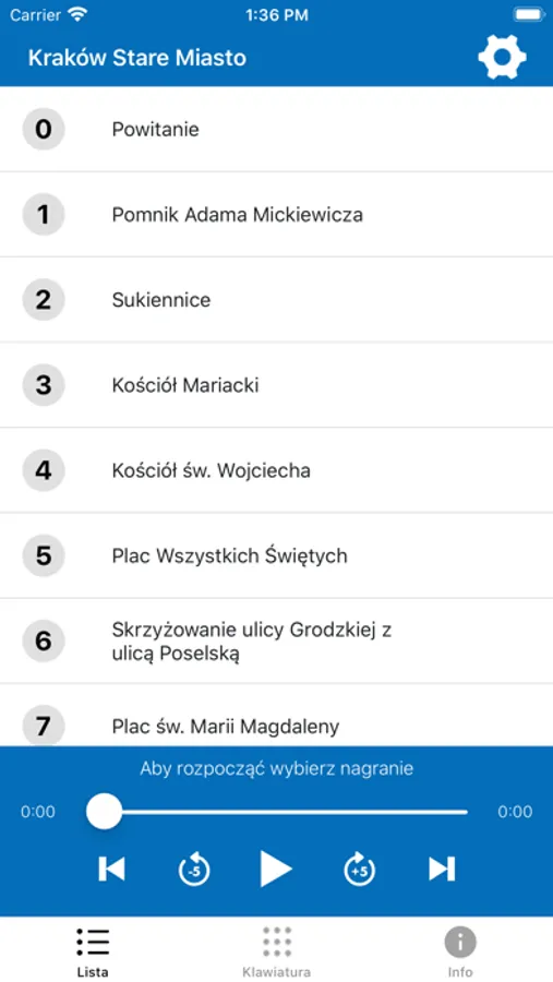 Audiowycieczkę rozpoczynamy na środku największego w Europie Rynku. Podziwiamy gotycki kościół Mariacki, słuchając – przy odrobinie szczęścia – najpopularniejszej polskiej melodii, czyli hejnału z wieży Mariackiej. Następnie idziemy na uroczy plac obok świątyni, na którym zdecydujemy, czy już teraz chcemy wejść do jej wnętrza, by podziwiać niezwykły ołtarz Wita Stwosza.