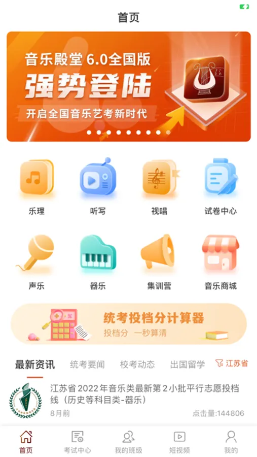 音乐殿堂app ——国内最受欢迎的音乐艺考学习平台。为广大音乐考生提供全面专业的学习资料和辅导。包含乐理、听写、视唱、声乐、器乐五个考试必考科目。同时还开设试卷中心、考试中心、班级管理、短视频、集训营、音乐商城,为考生提供更便捷的服务。