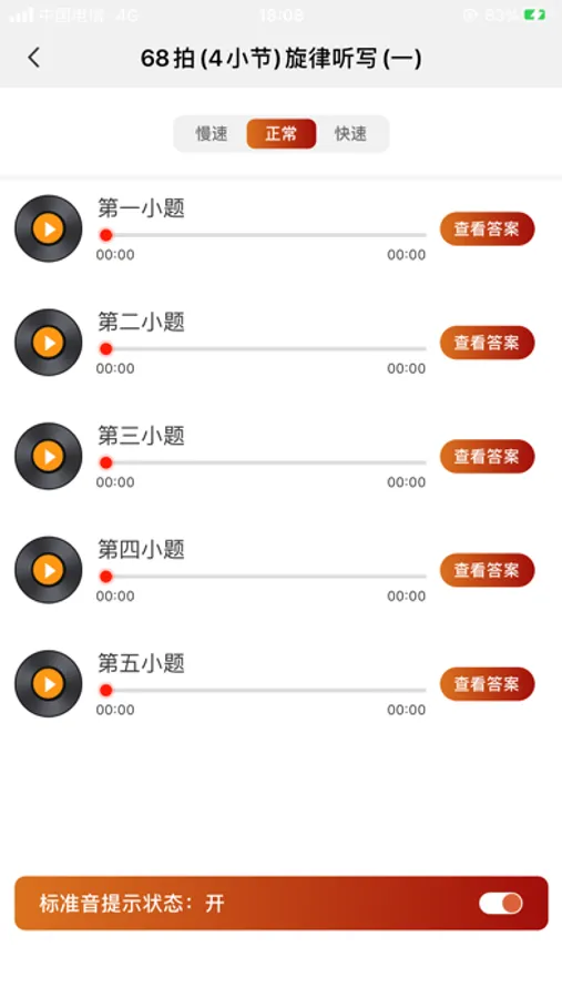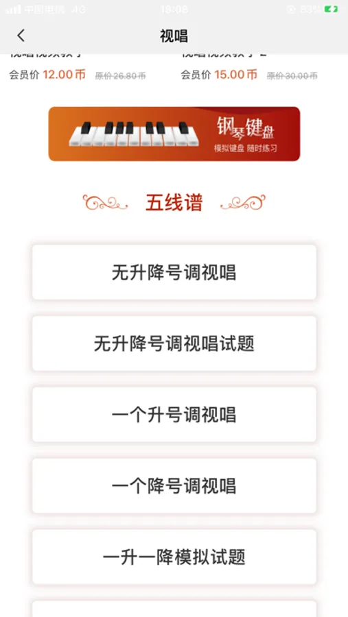 听写答案和视唱试题均为五线谱,便于识谱,系统设置了横屏查看功能,谱面清晰美观,配套高清音频,速度可根据需求随意调整,五线谱视唱配有专业的钢琴键盘,功能齐全,每个专区配有视频教学。