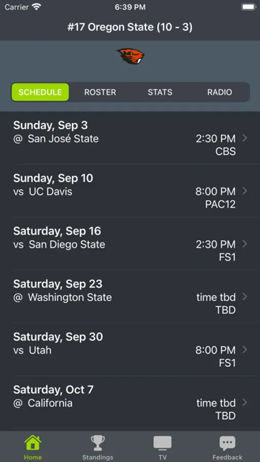 Oregon State Football provides scores, links to live radio, schedules, tv channels, player profiles, and game matchups in one location.