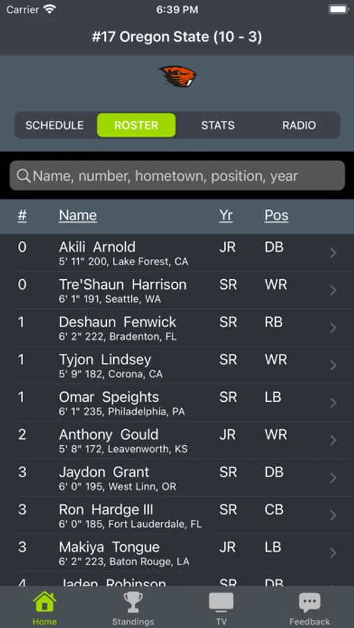 Oregon State Football by Rapid Roster.