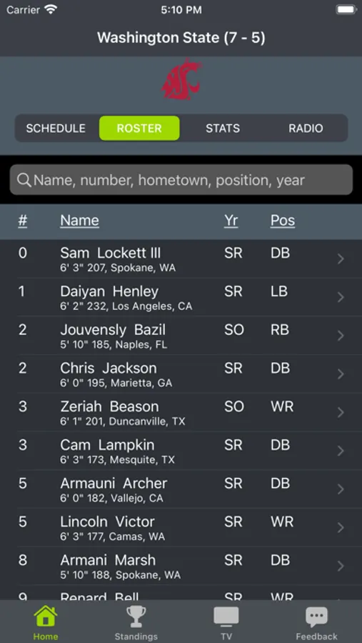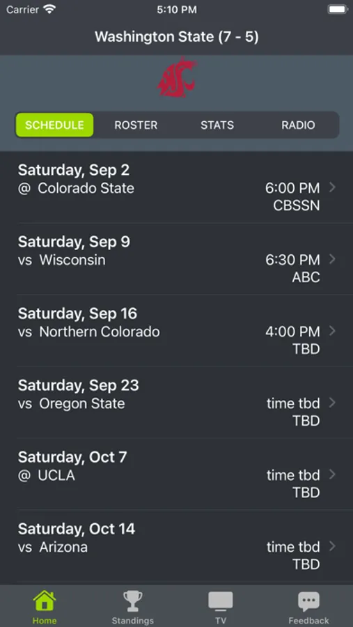 Washington State Football provides scores, links to live radio, schedules, tv channels, player profiles, and game matchups in one location.