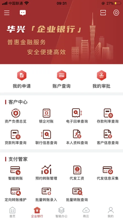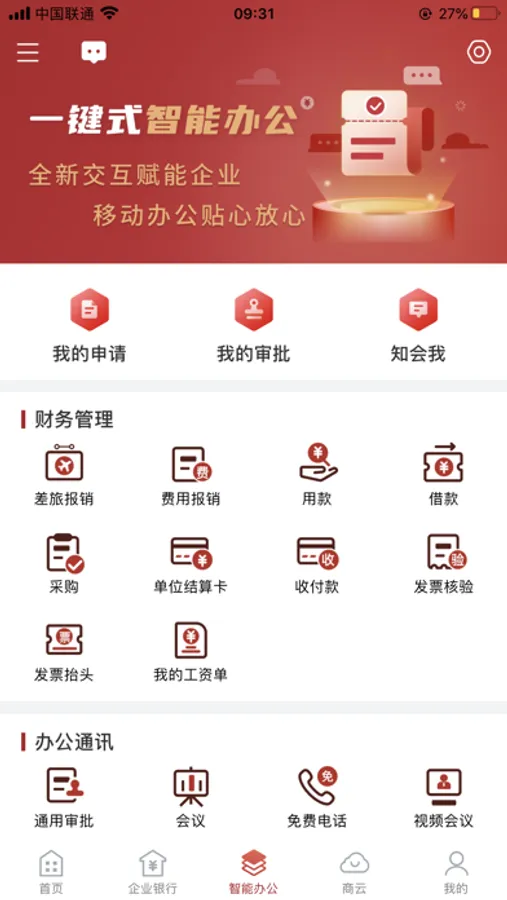 创新拓展移动金融场景,将移动金融场景传统金融延伸至企业用户的各类业务场景,为客户提供考勤打卡、财务报销、会议沟通、商务采购等服务,实现高效智能办公;同时,将金融业务与非金融服务场景高度融合,拓宽企业手机银行服务的广度与深度,全方位满足客户移动金融需求。