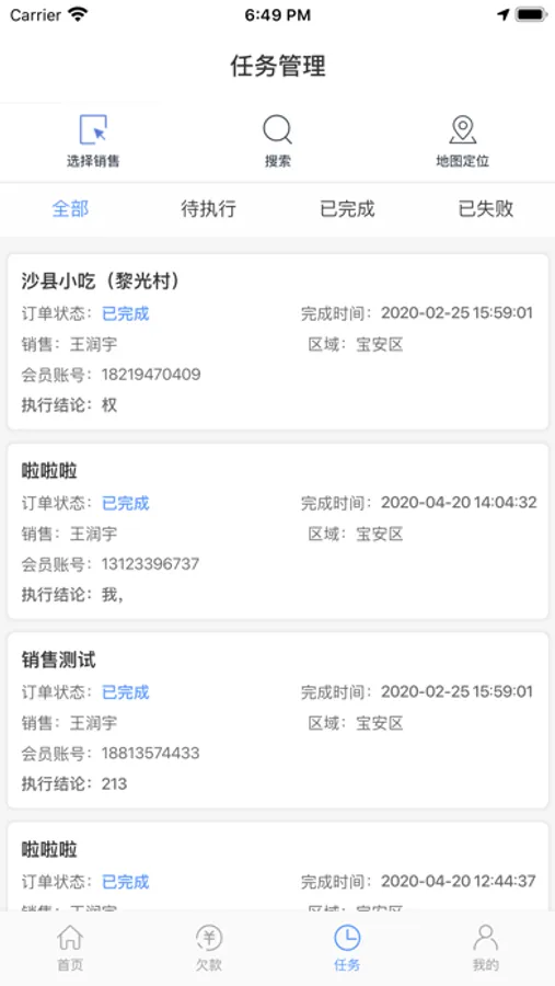 一款针对于销售人员专用的 App,方便销售人员查看销售任团,团队协作,上门拜访等