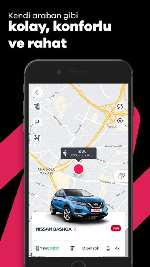 TikTak ile farklı ihtiyaç ve zevkine uygun binlerce arabayı ister bireysel ister kurumsal olarak kullan, kiraladığın süre kadar öde, yakıt masrafını hiç düşünme. İspark’larda ödediğinden fazlasını TikTak puan olarak kazan, dilediğin gibi harca!