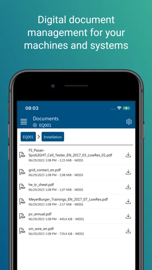 EquipmentCloud® Mobile is an app for machine manufacturers to work effectively and productively and to stay up to date - whether in the field at the machine, at the customer site or during service visits. The cloud-based app provides a machine-centric view of relevant information and data that can be accessed anytime, anywhere.