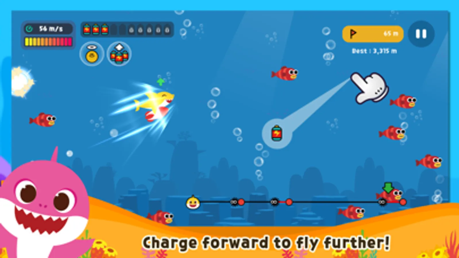 - Send Baby Shark flying as far as you can! Use your finger to draw a line to his friends, and they will help him in different ways!