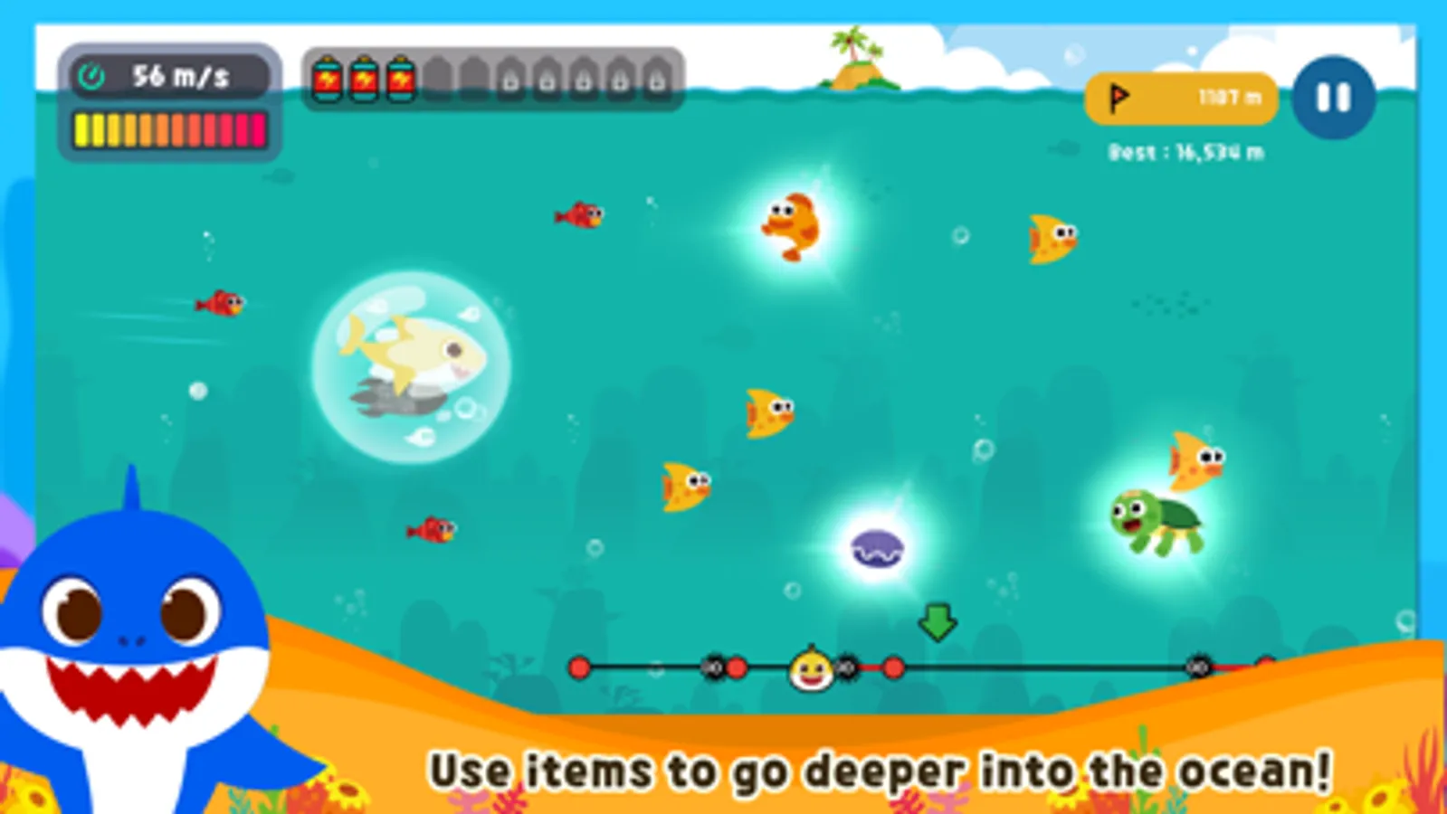 Full of curiosity, Baby Shark loves exploring the ocean. Help him get as far as he can together with his friends!