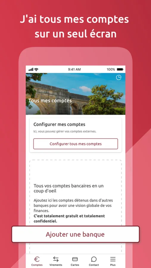 - Visualisez tous vos comptes, même ceux d’autres établissements bancaires sur un seul écran pour avoir une vue d’ensemble de vos finances avec le nouveau service d’agrégation de comptes.