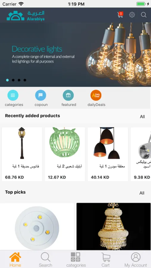 The official IOS Application for "Al Arabiya" Company, A comprehensive list of electrical appliances , interior and exterior lighting, special deals more.