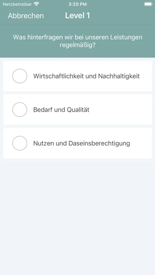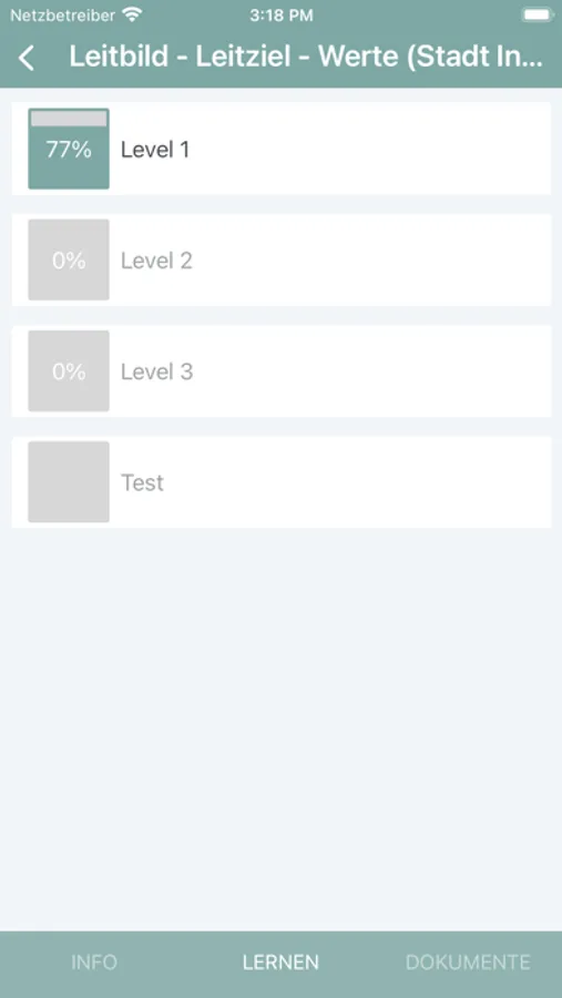 Zusätzlich zum klassischen Lernen wird auch Level-Lernen angeboten. Im Level-Lernen werden die Fragen vom System in drei Levels gegliedert und im Zufallsprinzip abgefragt. Zwischen den einzelnen Levels gibt es eine Verschnaufpause, um den Inhalt bestmöglich zu speichern. Dies ist notwendig, um einen hirngerechten und nachhaltigen Wissenserwerb zu erzielen. Ein Abschlusstest macht den Lernfortschritt sichtbar und zeigt, wo mögliche Defizite liegen und gegebenenfalls noch eine Wiederholung sinnvoll ist.
