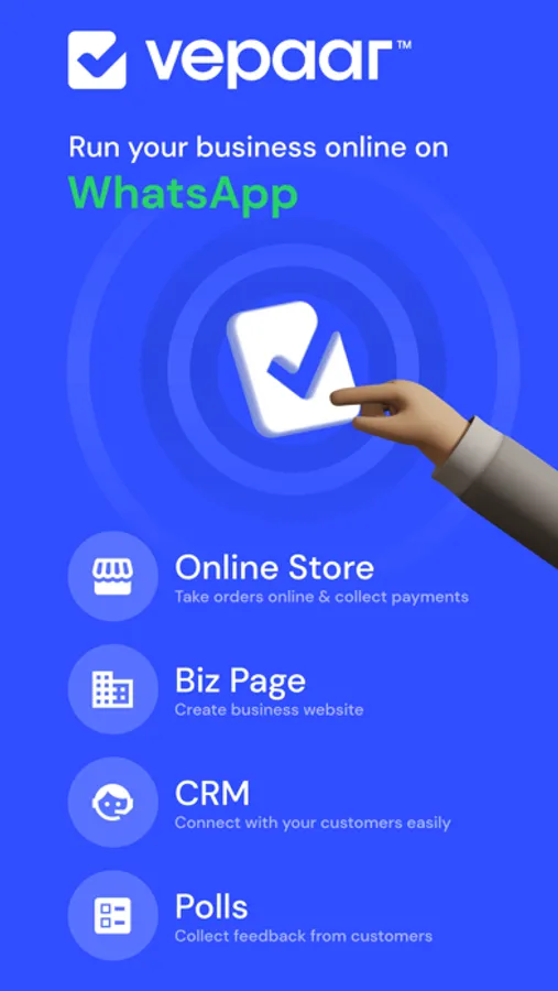 Vepaar is an app that helps you in managing your entire business on WhatsApp. Vepaar offers features like Store, Poll, and CRM as well with which you can run your business seamlessly.