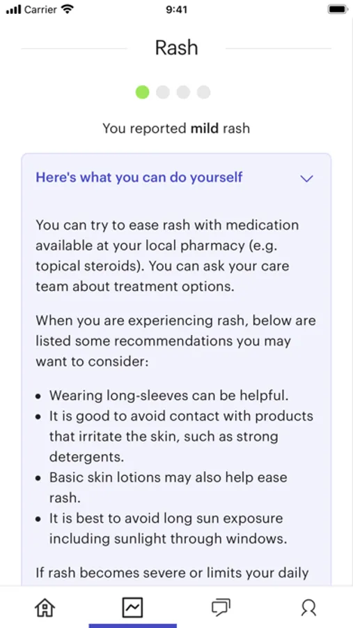Your care team has prepared everything for you based on your individual treatment plan. You can start reporting your symptoms and using other features right away.