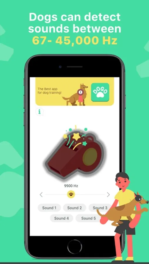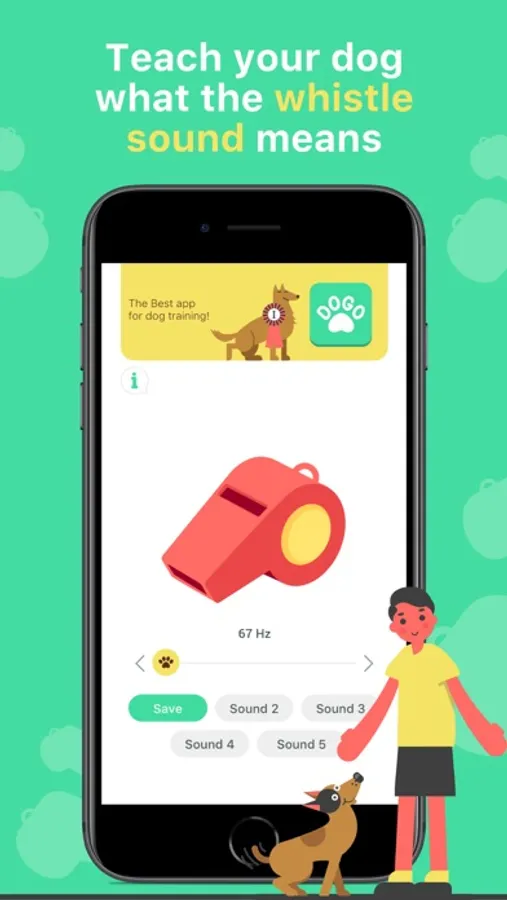 Second, with the help of Dogo - dog training app, teach your dog some obedience commands, e.g. sit or lay down. Once your dog has mastered it, assign a whistle pattern that will represent the command.