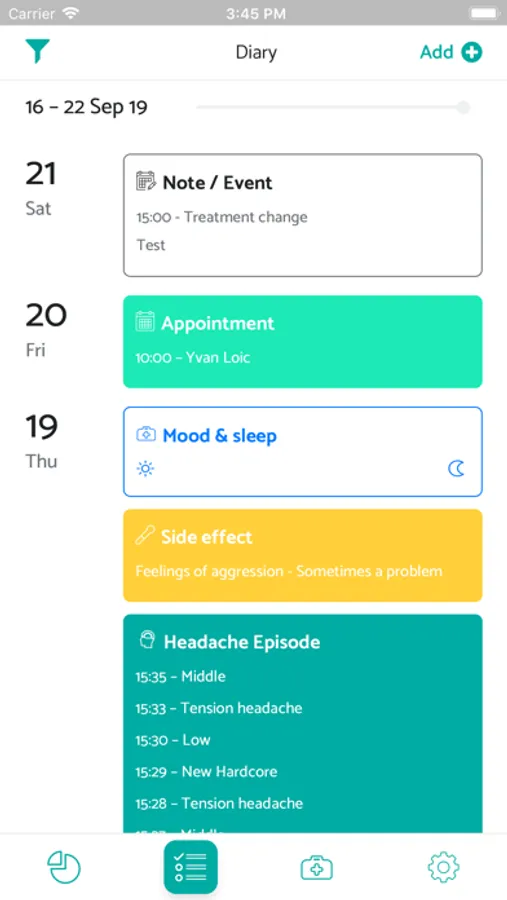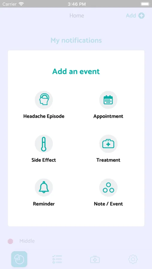 Thanks to the diary, you can log your headaches seamlessly. You can also log your side effects, your appointments and any other headache-related event. This will allow the assistant to help you with your headaches.