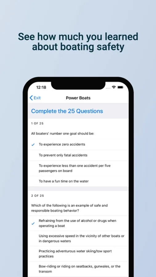 Interested in seeing how you measure up? From the app, you can also take a Safety Assessment to see how much you learned about boating safety. You will receive certificates upon successful completion of each module and can access these certificates from the app.