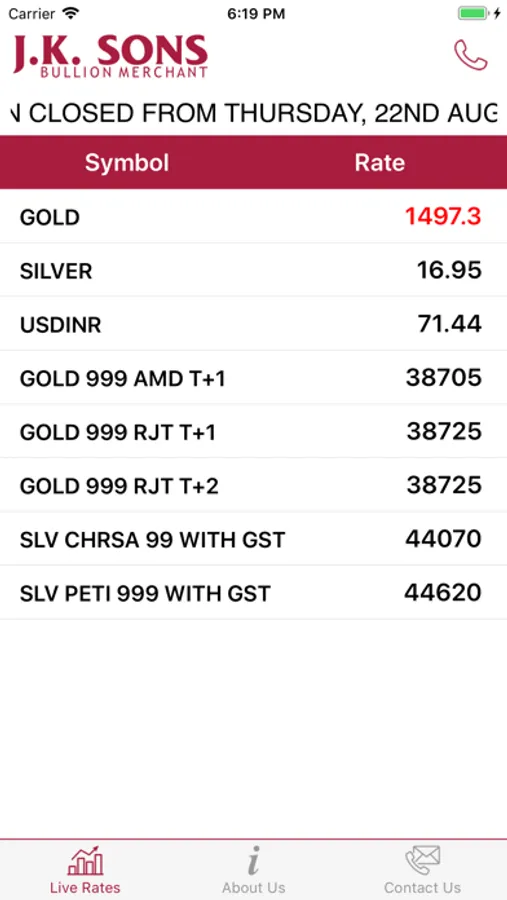 Welcome to J K Sons. View our live rates of Gold and Silver Bullion with this fantastic app. We provide live prices of gold and silver from this app and we also trade at rates provided in app.