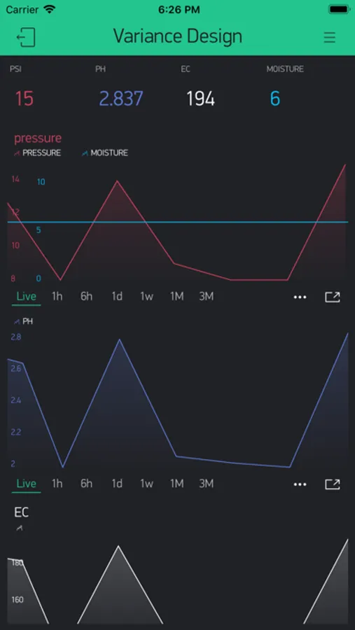 Custom interface designed to monitor and control your living system / grow operation from a smart phone anywhere in the world in real time.