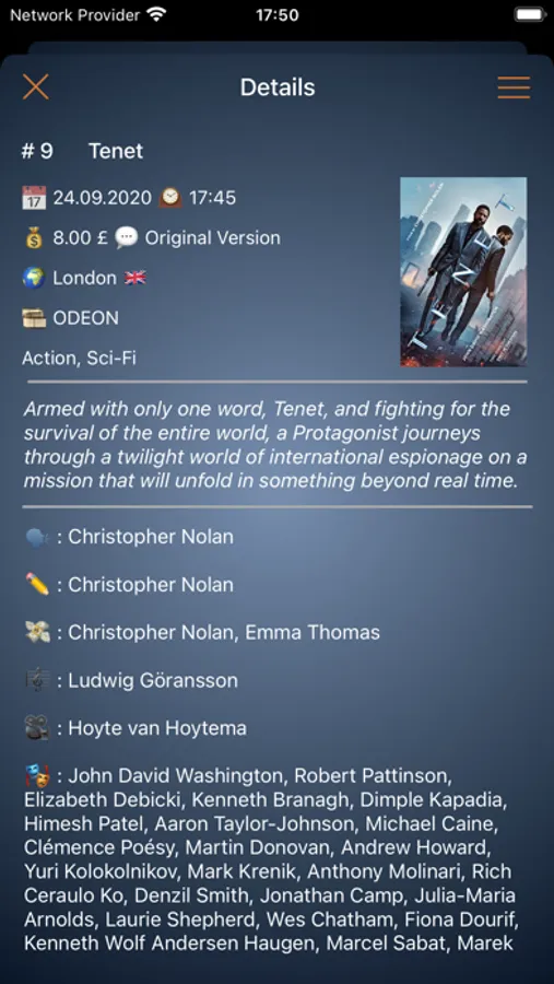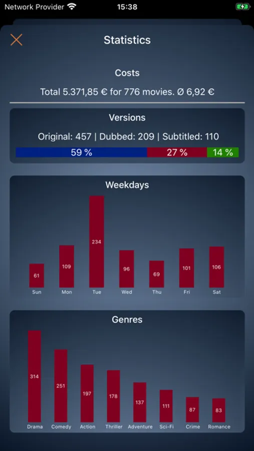 Easily record your visits to the movies by choosing from current screenings and movie theaters nearby. Browse through your history and search for actors and other cast members you have seen. Keep track of expenses and see statistics based on your data. Reminisce by viewing the worlds map including the movie theaters you have visited.