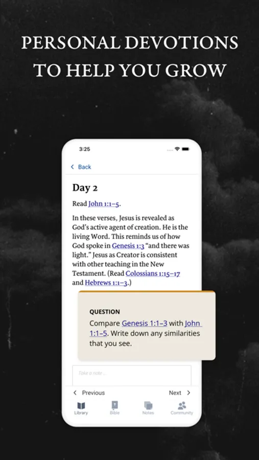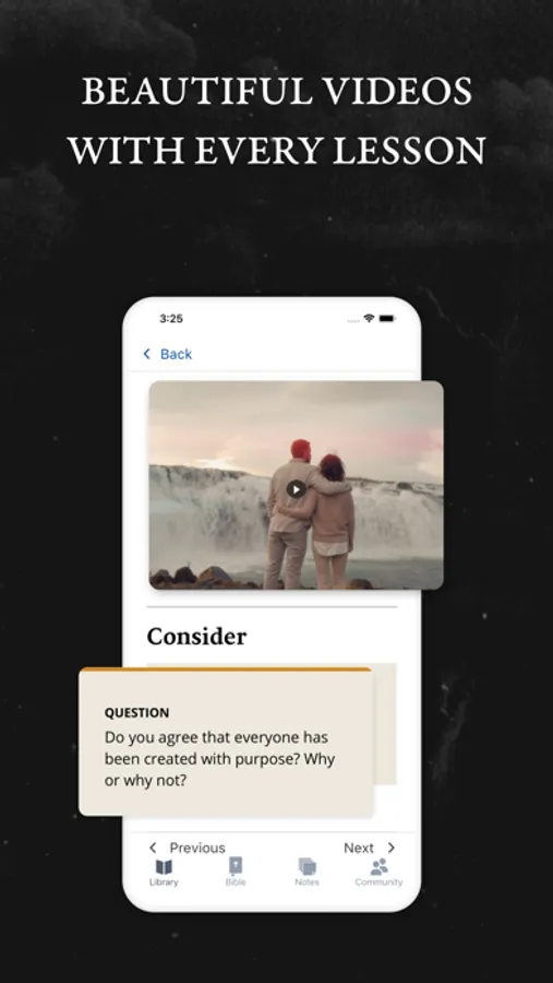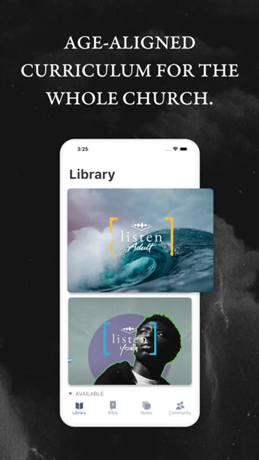 Engage as a group through thought‐provoking videos, discussion questions, and in‐app messaging features. Engage on your own throughout the week with personal devotions, access to the Bible within the app, and space for notes as you listen to what God is saying through His Word. Engage as a family with family devotions that support parents as they disciple their kids at home along with age‐aligned curriculum that equips all ages to study the same thing at the same time.