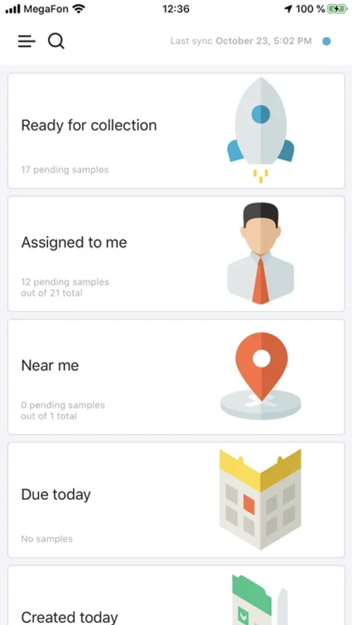 - Create sample pick up tasks at your laboratory, pick them up while on the field, and deliver them back at the laboratory.