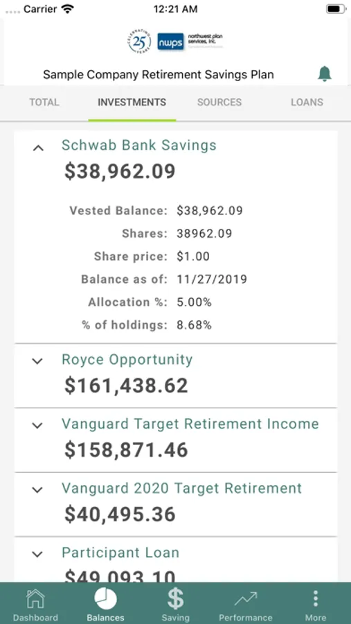 • Drill down into your account balance to review your individual investment holdings, your share balances and daily share prices of your investment holdings