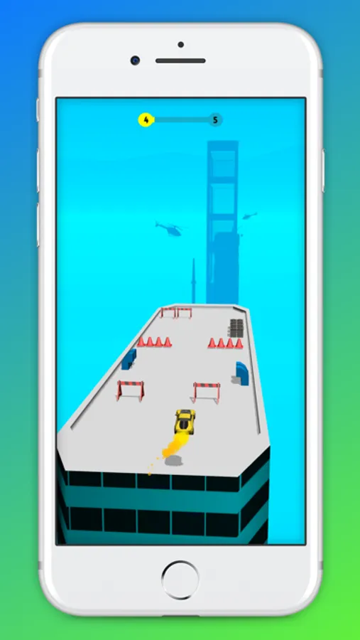 Flip your car and make sure that you get the powerups and you break through the buildings
