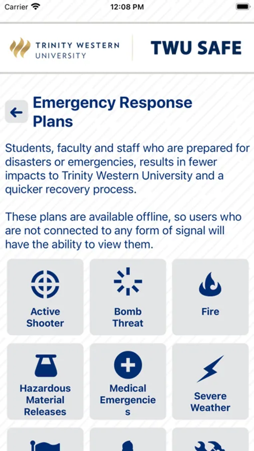 - Emergency Response Plans: Campus emergency documentation that can prepare you for disasters or emergencies. This can be accessed even when users aren’t connected to Wi-Fi or cellular data.