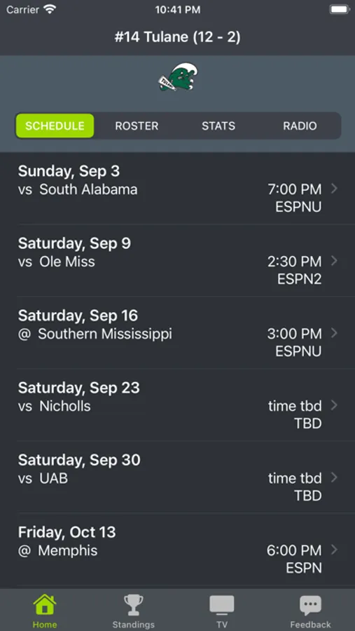 Tulane Football Schedules provides scores, links to live radio, schedules, tv channels, player profiles, and game matchups in one location.