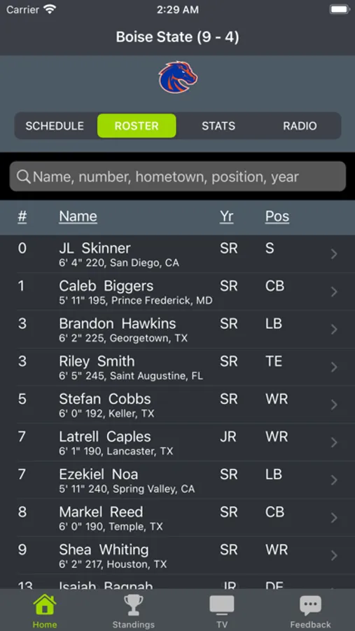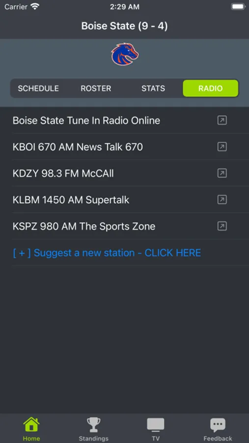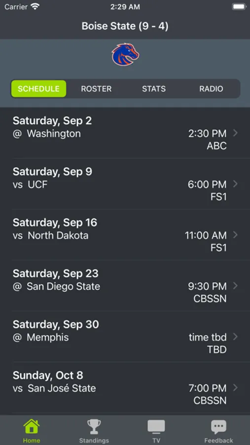Boise State Football Schedules provides scores, links to live radio, schedules, tv channels, player profiles, and game matchups in one location.