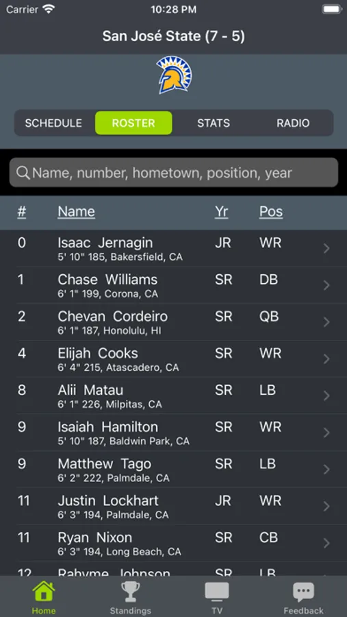 San Jose State Football App provides scores, links to live radio, schedules, tv channels, player profiles, and game matchups in one location.