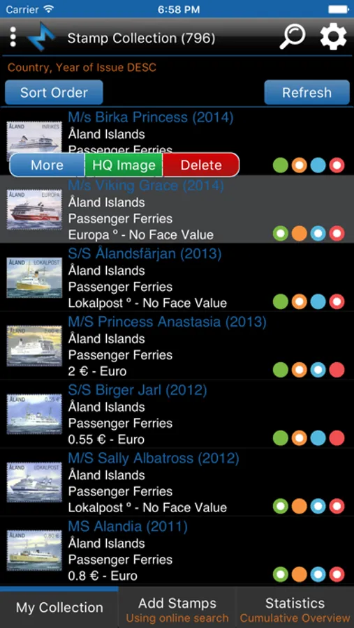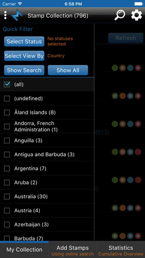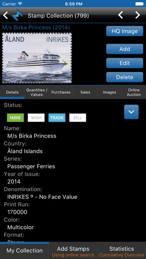 Tag your stamps with Have, Wish, Trade and Sell status by simple click on status button or customize your own status list.