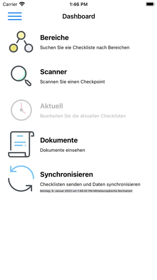 Abfragen werden in der individuell konfigurierbaren Checklisten-App durch das Markieren von Check-Boxen, das Auswählen von vorgegebenen Antwortmöglichkeiten oder das Eingeben von Freitext erledigt. Außerdem können die Abfragen durch Bildaufnahmen ergänzt werden. Durch die standardisierten Frage- und Antworttypen der digitalen Formulare wird der Einfluss menschlicher Fehler beim Ausfüllen der Checklisten reduziert.