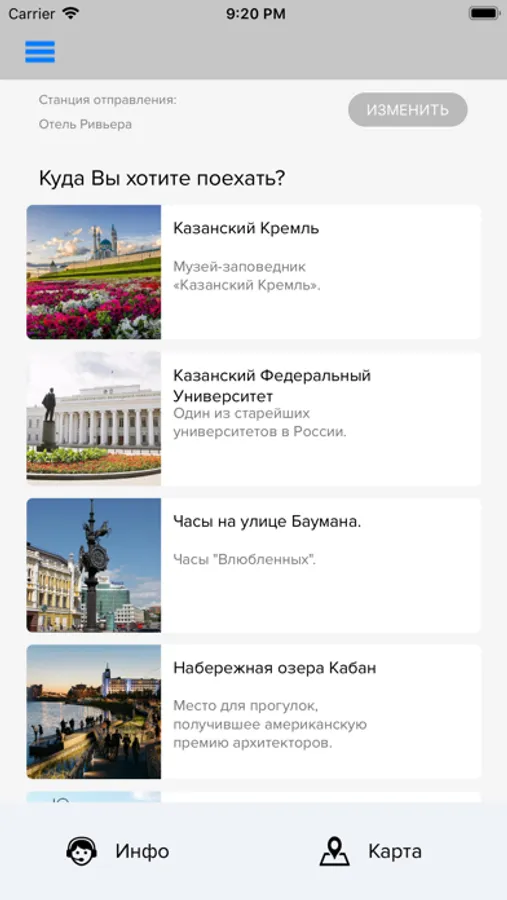 - каталог главных достопримечательностей с возможностью вызвать шаттла до каждой из них;
