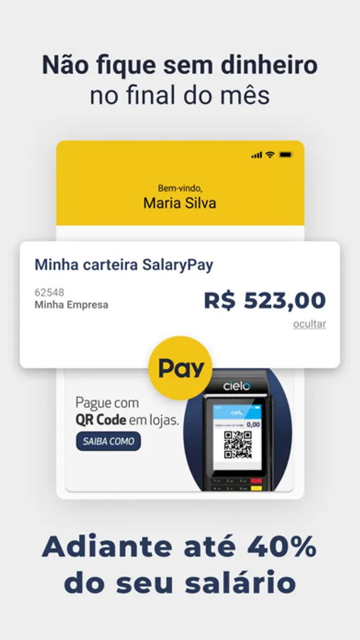 - Comprar em mais de 1 milhão de estabelecimentos Cielo, e só pagar com o próximo salário