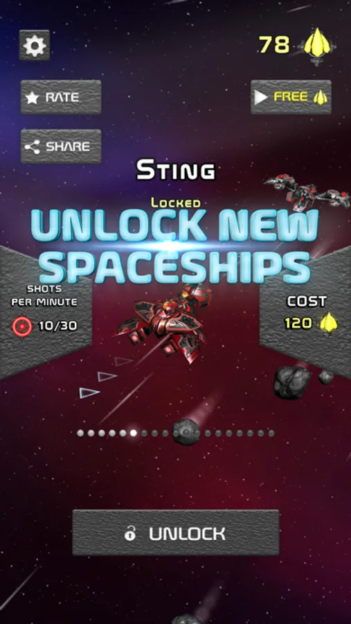 Asteroids are cluttering the path to your new world. Avoid them by guiding your fighter between them and blasting them into dust. With the crystals you gather along the way you will be able to buy better fighters which fire more often.