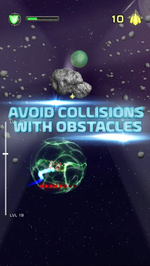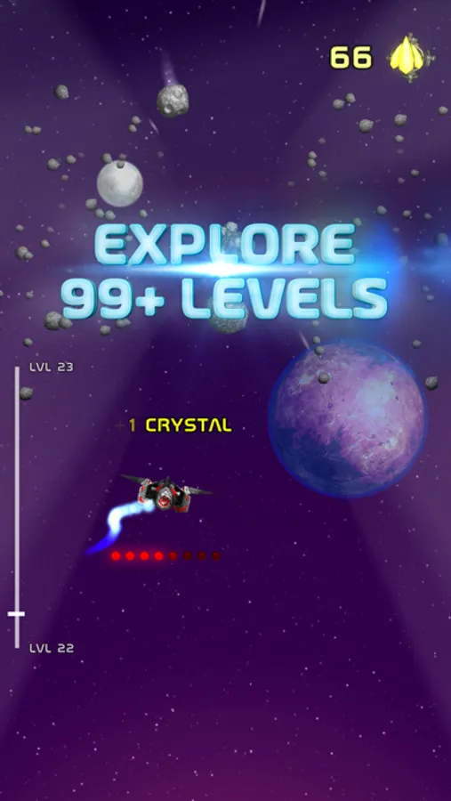 Crash asteroids on your path to reach the wormhole to a new world. Collect crystals and additional power-ups on your way.