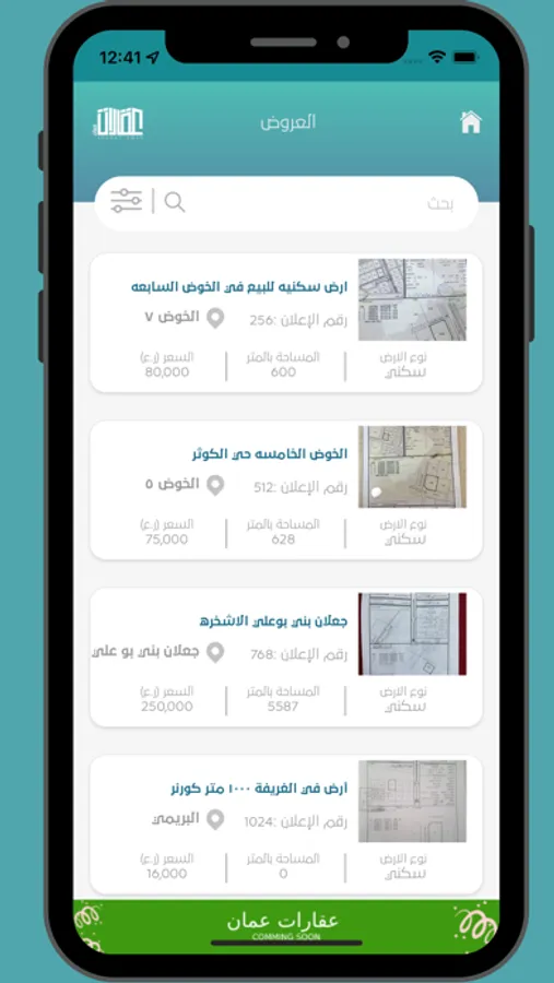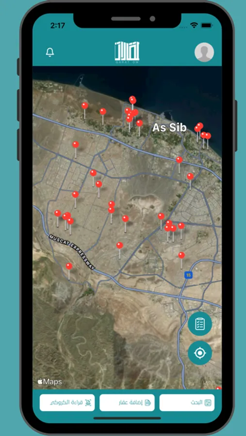 المنصة الاولى المتخصصة في عرض العقارات مع وجود الخارطة في نفس العرض مع إمكانية الملاحة إلى موقع الأرض ، ويوفر التطبيق الخدمات التالية:
