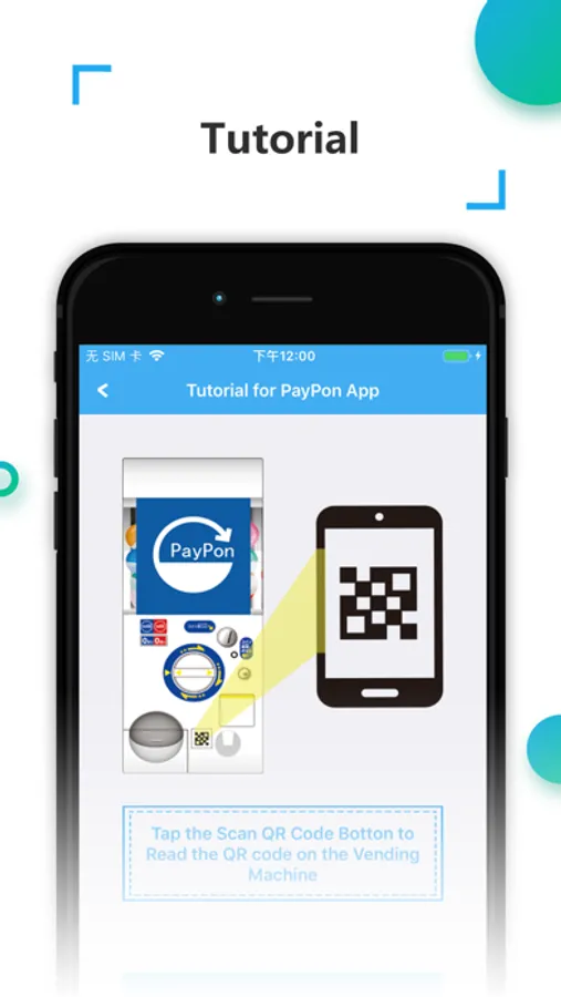 1. Turn on the app ,click the [scan] button, then point the camera to the QR code attached to the Vending Machine.