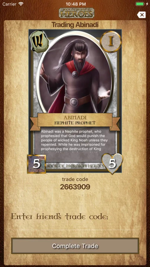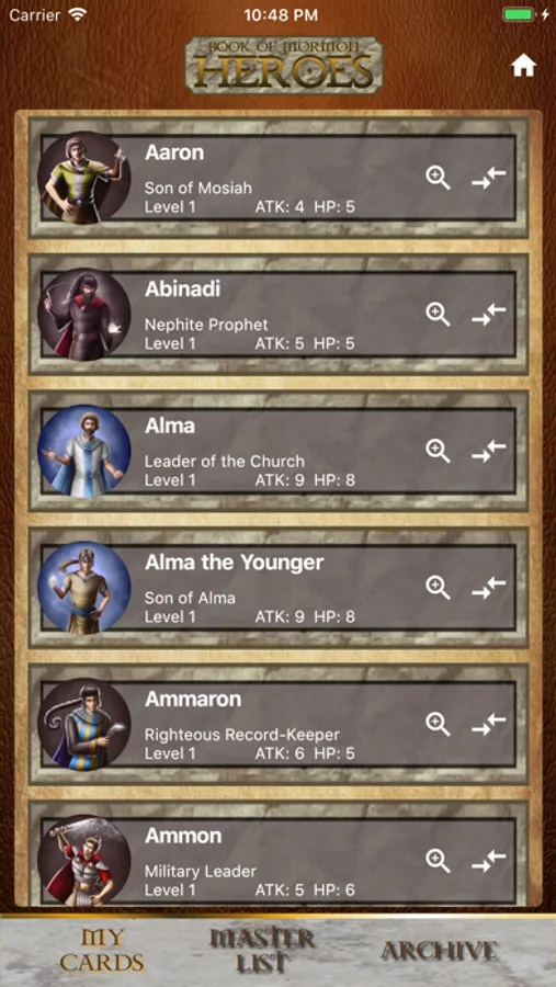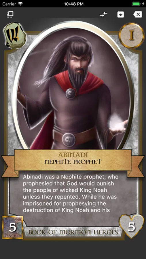 This app brings the characters of the Book of Mormon to life in a way you have never experienced before. Each card shows a picture of the character, gives details about their life, and lists the scriptures where they can be found. If you get more than one of a card, then trade it with a friend! Once your collection is at legendary level, you can journey on a campaign to take on the villains of the Book of Mormon yourself!