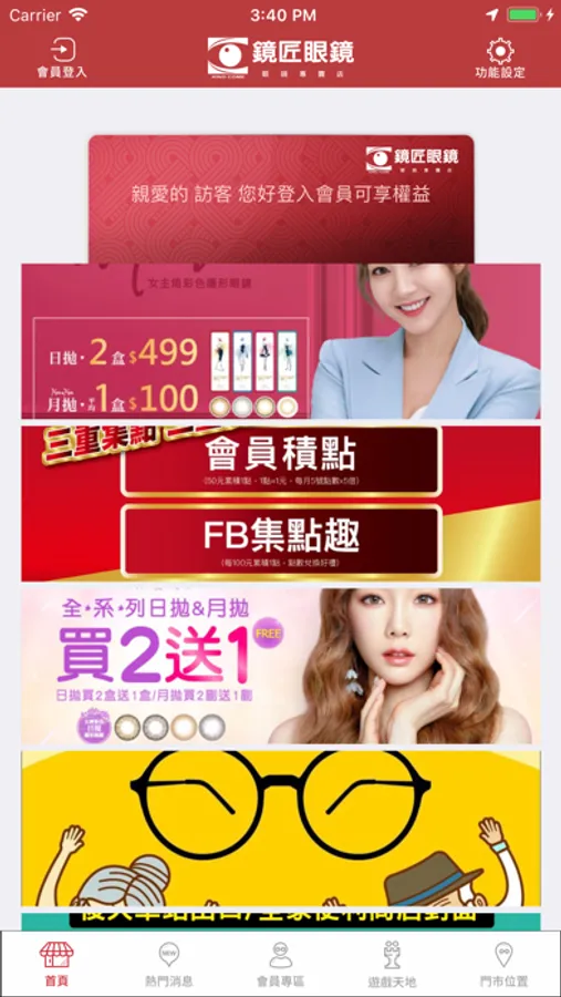 鏡匠眼鏡專為會員準備的行動會員裝置,可在上面取得鏡匠眼鏡的最新消息以及鄰近門市位置查詢,更可第一手獲得產品優惠資訊,是鏡匠眼鏡會員必備的工具。