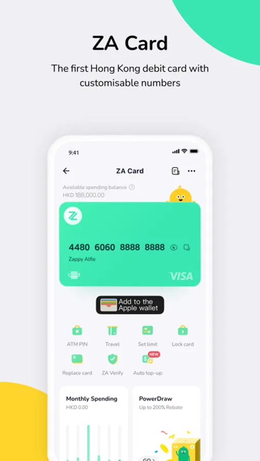 Get the first Visa debit card with a customisable card number in Hong Kong! You can even apply for a physical card! To protect you from the risk of theft, there is no CVV and expiration date on the physical ZA Card, and no signature is required for payments.