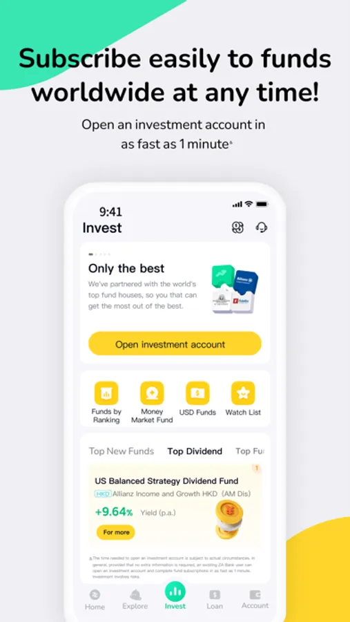 ZA Bank is dedicated to creating an all-in-one financial services platform, which includes features like local transfer, time deposit, ZA Card, loan, foreign currency exchange, overseas remittance, insurance, investment and more in one App!