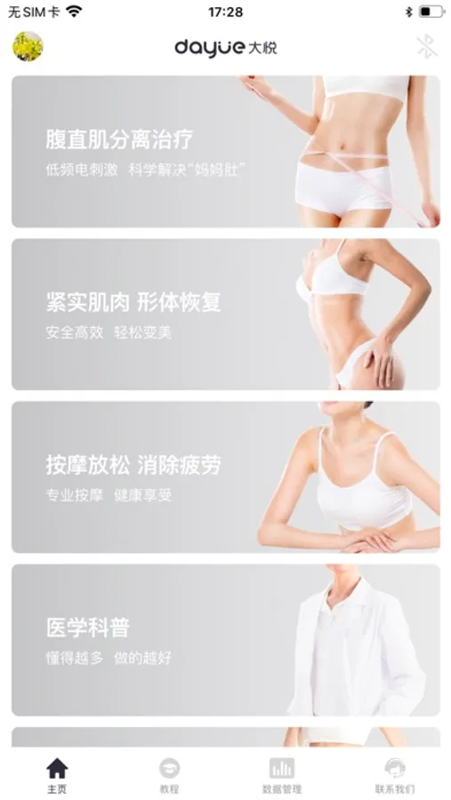 大悦塑形是一款配大悦腹直肌治疗仪使用的专业家用型产品后腹直肌康复治疗及塑形的APP,具备腹直肌分离治病、紧实肌肉 形体修复、按摩放松 消除疲劳等功能。