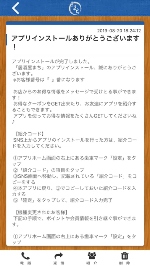 居酒屋 まちのアプリをSNSを通じてお友達に紹介する事ができます。