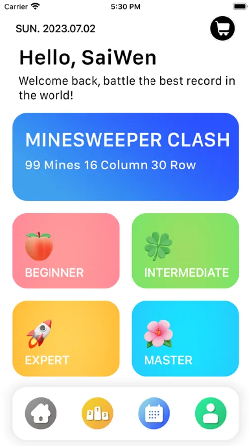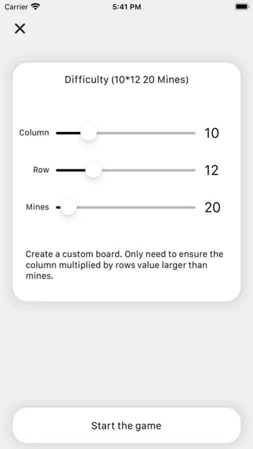 • Start with a covered minefield of square tiles. Uncover the field by tapping one square at a time.
