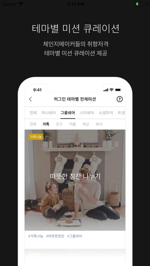 테마별 미션 큐레이션을 제공합니다.