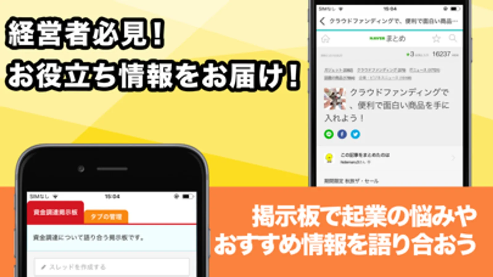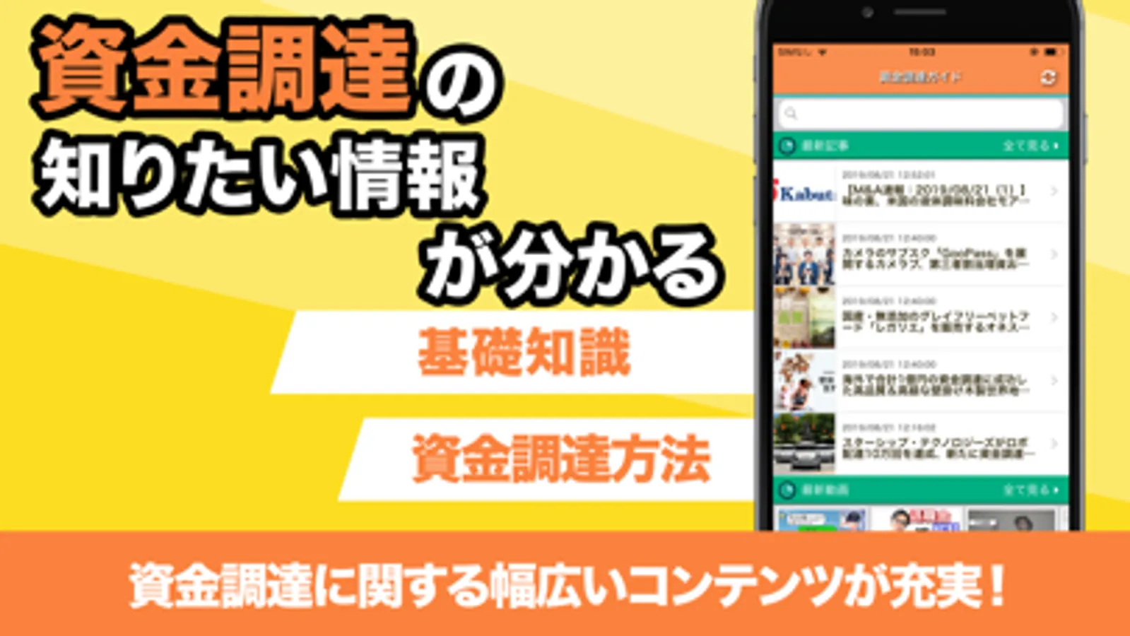 資金調達に必要な基礎知識、ノウハウ、お役立ち情報などがこのアプリ1つで全て網羅!